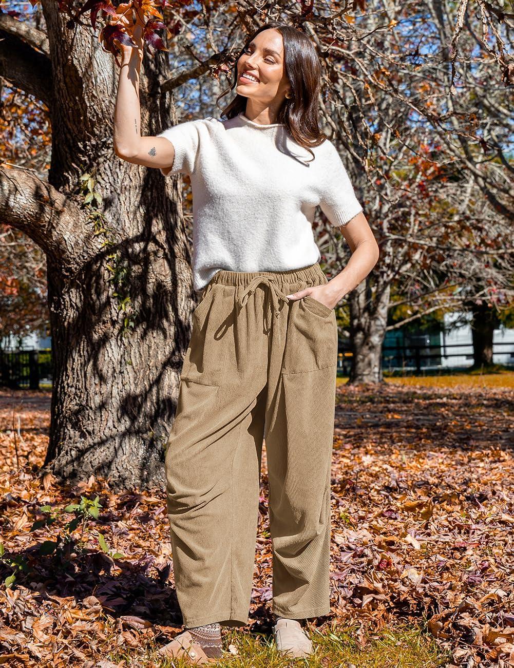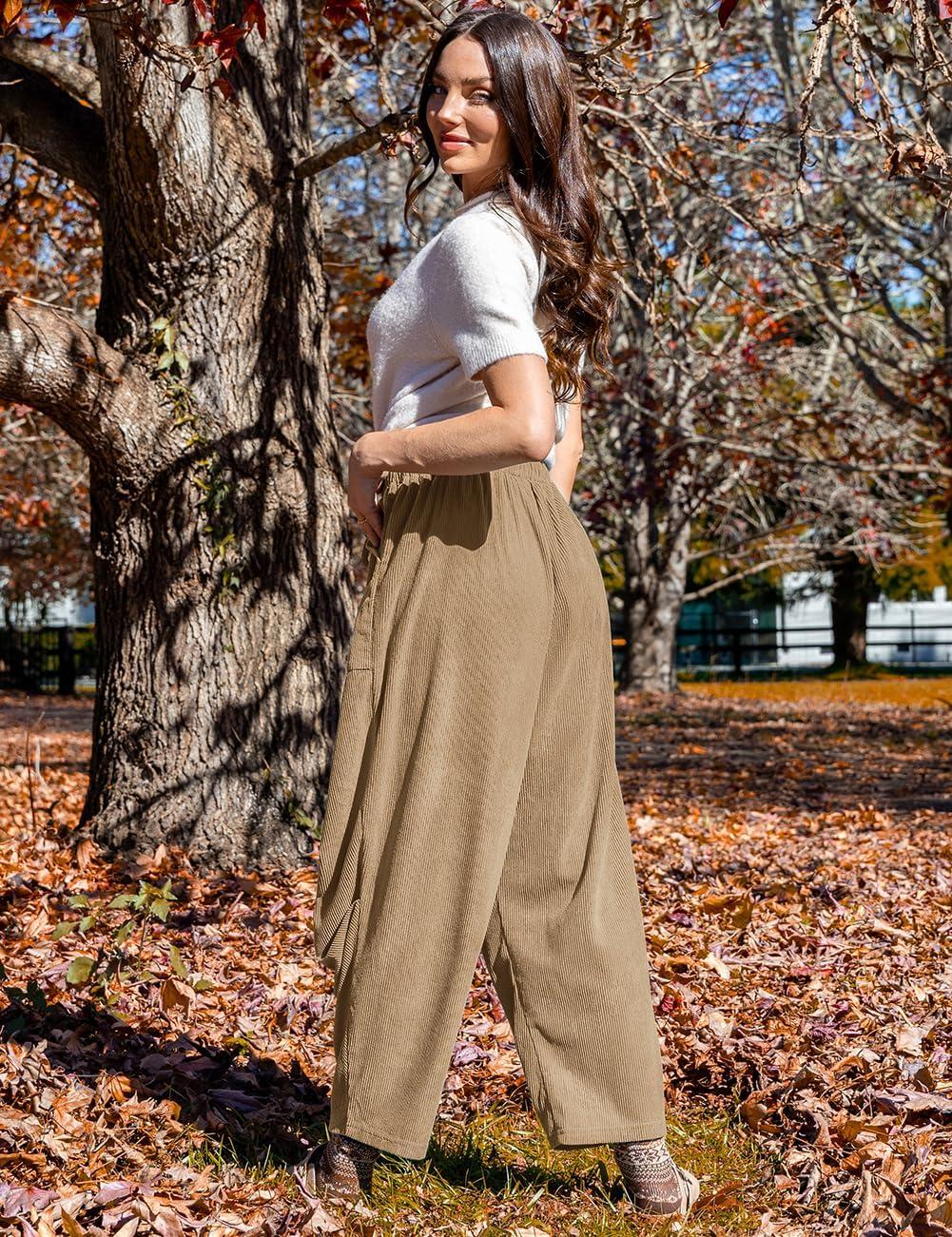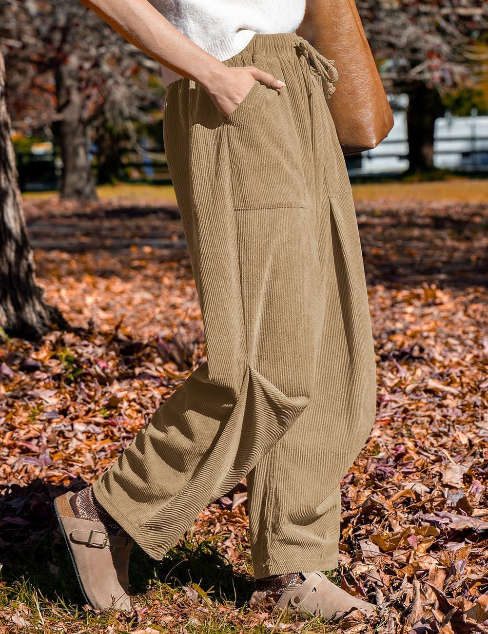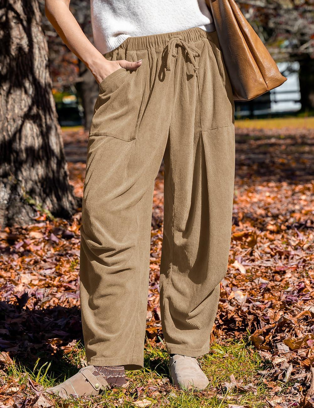 TARSE Women Corduroy Baggy Harem Pants Drawstring Loose Wide Leg Casual Lounge Pant 2025 Travel Vacation Clothes with Pockets(Camel)