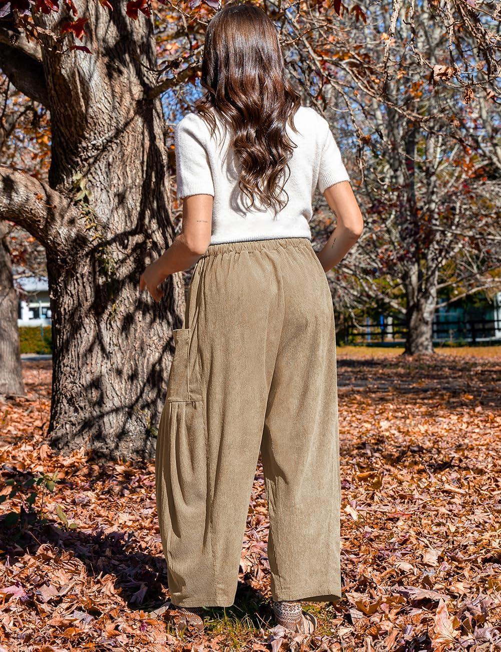 TARSE Womens Corduroy Pants Barrel Casual Loose Baggy Drawstring Wide Leg Palazzo Harem Pants with Pockets(Camel)